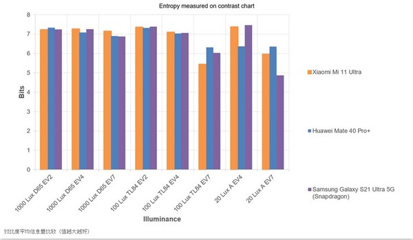 在实验室中,小米11Ultra在所有光照条件下均具可以达到良好的动态范围值,如此图所示: