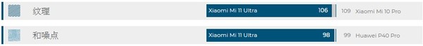 小米11Ultra可实现出色的纹理/噪点权衡平衡,其纹理和噪点表现跻身得分最高的手机之列。它在几乎所有条件下,都能很好地呈现精细细节并很好地控制噪点。只有在非常微弱的光线下,我们才能看到纹理略微逊色。即使在最难处理的条件下,噪点也仍然很少,这是该手机真正的优势。