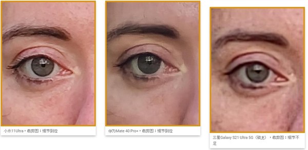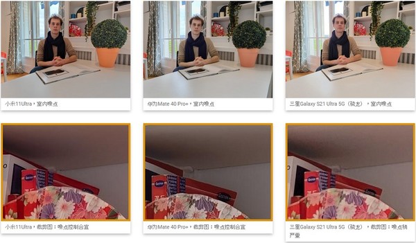 在所有条件下,整个画面(包括阴影区域)的噪点都控制得很好。在这个场景中,小米和华为都比三星Galaxy S21 Ultra拍出了更显干净的效果。