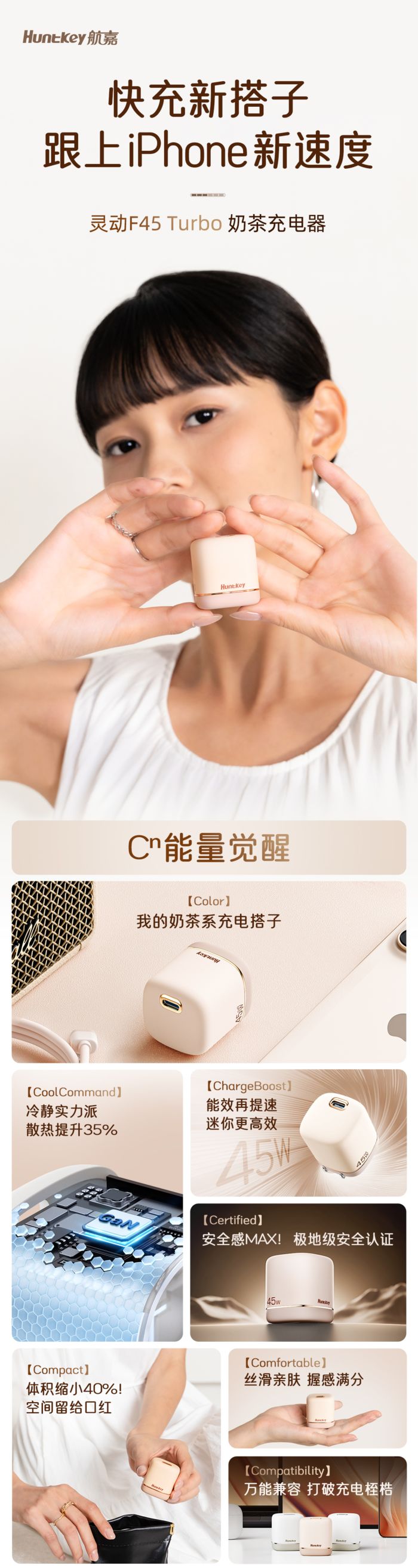 新品上市 | 航嘉灵动 F45 Turbo 奶茶充电器正式发布!心动满格就来电~ (文末福利)