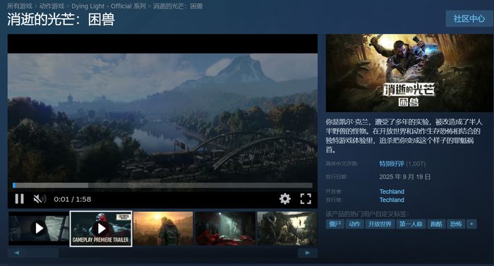 经过多年的等待,《消逝的光芒》系列终于带来了新作《消逝的光芒:困兽》。这款已于2025年9月19日发售的作品,在Steam国区售价248元,目前获得了特别好评。