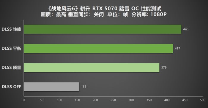 本次《战地风云6》的性能测试将选用耕升 GeForce RTX 5070 踏雪 OC显卡进行,观察游戏在1080P、2K、4K三种主流分辨率下的帧数表现。游戏画面设置均选择所提供的最高选项,着重测试游戏在开启、关闭NVIDIA DLSS 4多帧生成技术下的帧率差距体现,期望给各位玩家带来最具参考价值的性能测试结果。