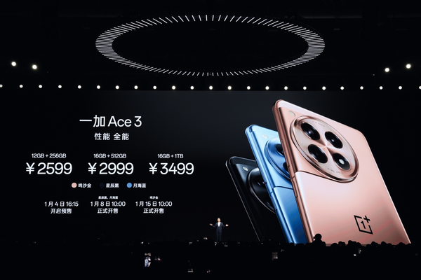 在设计上,一加Ace 3选择了金属中框和全新玻璃工艺,打造出一种既坚固又轻盈的手感。这款手机的质感让人印象深刻,无论是手感还是视觉效果都达到了新的高度。一加Ace 3的星辰黑和月海蓝配色将于1月8日10:00正式开售,而鸣沙金配色将于1月15日10:00正式开售,售价2599元起。