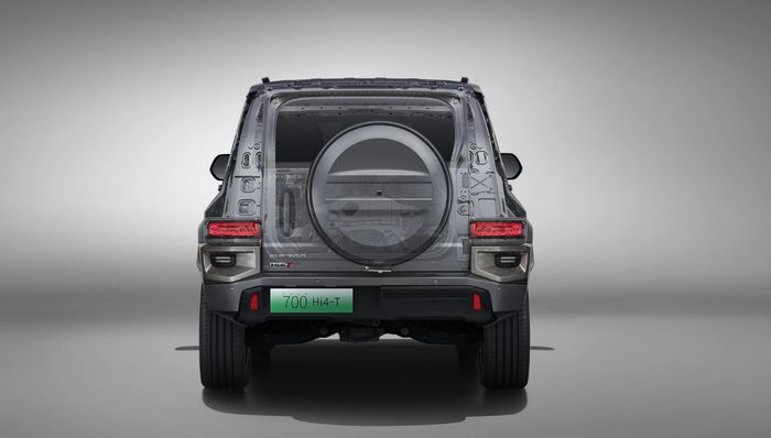 车尾采用侧开式尾门,保留着经典越野车的标志性元素,尾门也悬挂有“备胎书包”。高配车型配备电子可断开式稳定杆,极限越野或脱困时可让车辆增加 60 毫米的悬架反跳行程,电池也被安装在了车架内测,保障越野时电池的安全。