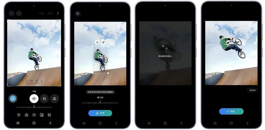 不仅如此,生成式AI还可以为视频创作赋能。新增的即时慢动作功能,只需长按视频画面,AI即可根据动作进行补帧,将普通视频转换为慢动作视频,为视频生成流畅的慢动作回放。如此一来,无论是篮球场上华丽的运球动作,还是酷炫的极限运动,都能通过AI补帧捕捉更多画面细节,实现平滑、清晰的慢动作特效,为用户观看内容或视频剪辑提供更便捷、易用的智能体验。此外,三星Galaxy S24系列的智能修图建议功能,可针对照片实际情况给予合理的优化建议,待用户确认调整后,便能一键完成去除反光、清除摩尔纹等操作,进一步提升出片效率。