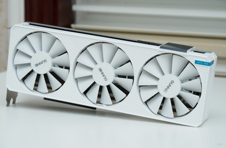 蓝戟 intel ARC A770 PHOTON共有黑白两种配色,小编手里的是白色,看上去毫不花俏,十分适合放在小清新的纯白色主题装机中,显卡采用三风扇设计,长300mm,宽128.5mm。