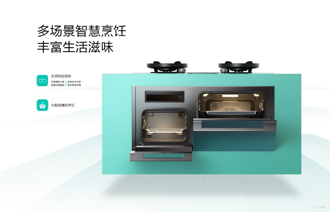 如灶蒸烤QX01的蒸烤一体机部分采用了双腔布局,左边为速蒸小腔,快速蒸制,效率再度提升,右边为蒸烤大腔,配置专业蒸、烤、炸、炖多种烹饪功能,搭配多菜烹饪AI智能协同技术,可以做到以不同的烹制方法同时制作不同菜品,无论是一日三餐还是家庭聚餐都能轻松掌握,更适合中国家庭的实际使用需求。燃气灶搭载一键爆炒技术,顶尖火力5.2kW之上,即使是家庭小灶火力也毫不逊色。