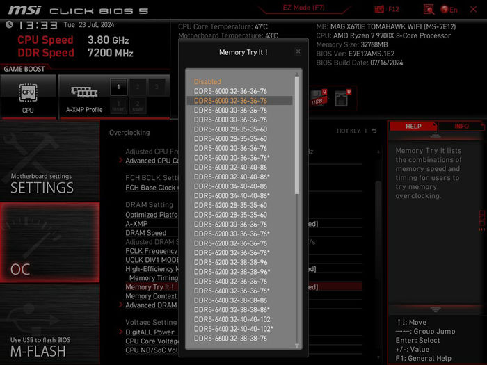 第一个功能「Memory Try It!」提供了一种快速而直接的方法来增强存储器效能。用户可以从下拉式选单中选择一个设定参数并进行测试。此功能可自动识别 RAM 芯片并提供合适的超频配置参数,包括频率和时序设定。透过“Memory Try It!”,使用者可以直接在 BIOS 中探索各种高频率和时序设定参数,从而释放其存储器模块的全部潜力。