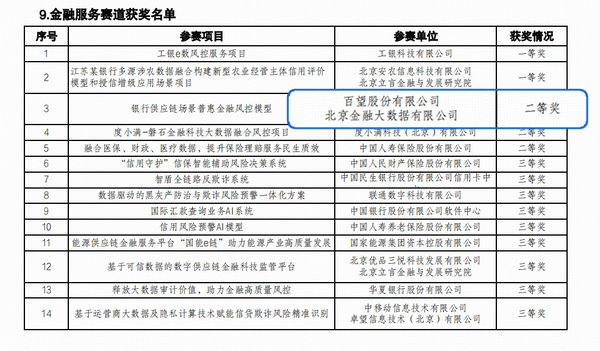 10月9日上午10点,2024年“数据要素×”大赛北京分赛颁奖典礼在北京中关村国际创新中心圆满落幕。百望股份有限公司(以下简称“百望云”)与北京金融大数据有限公司(以下简称“北京金融大数据”)联合打造的“银行供应链场景普惠金融风控模型”项目,在激烈的竞争中脱颖而出,斩获“金融服务”赛道二等奖。