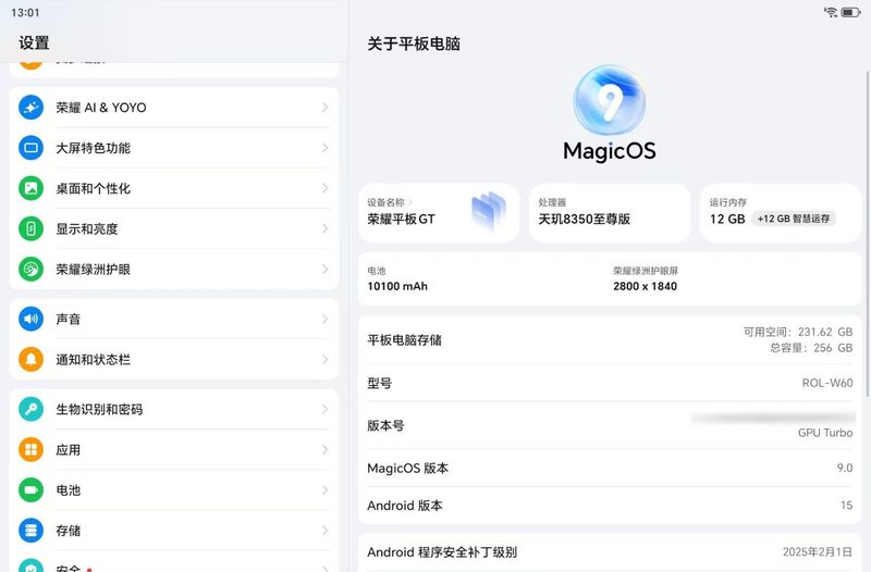 据此前曝料,荣耀平板GT配备一块分辨率2800x1840的屏幕、12GB内存、256GB存储空间和10100mAh的大容量电池,预装MagicOS 9系统。荣耀平板GT的另一大亮点在于其搭载的荣耀自研GPU Turbo技术。这项技术在平台级AI的加持下,能够充分释放芯片潜能,增强内核级底层性能。