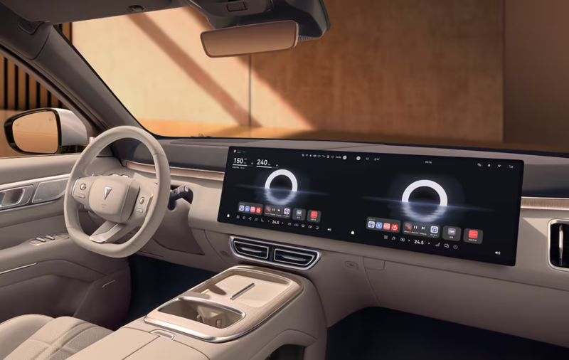 此外,深蓝 S09 还配备了 2.5K 分辨率的 15.6 英寸 + 15.6 英寸双连屏,以及后排 21.4 英寸 3K 分辨率娱乐屏(16:9 比例,支持 0-75° 可调角度)。值得一提的是,深蓝 S09 也是首批搭载鸿蒙智能座舱 HarmonySpace 5 的车型。