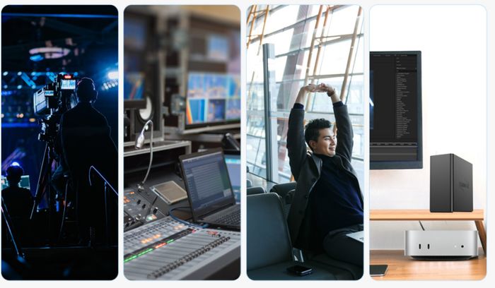 D4 SSD 支持四个 M.2 SSD,单盘最大容量可达 8TB,总存储空间最高可达 32TB的海量存储空间。从影视项目的原始素材库到动画制作的工程文件,它都能实现集中存储,让用户告别频繁更换存储设备的困扰。同时,设备支持默认的单盘独立运行模式,用户可自由选择存储策略;若追求更高性能或数据冗余,还可借助第三方软件 RAID 工具灵活组建 RAID 阵列,以适应不同项目的存储需求。